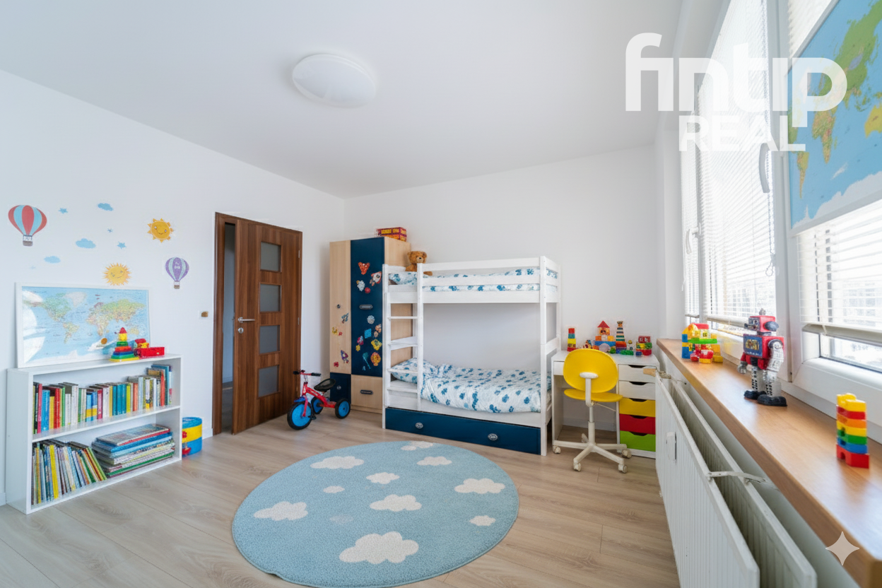 detská izba,nová kúpeľňa so sprchovým kútom a toaletou, priestranná vstupná chodba so vstavanou skriňou k byty prislúcha pivnica s spoločných častiach bytoeho domu.
