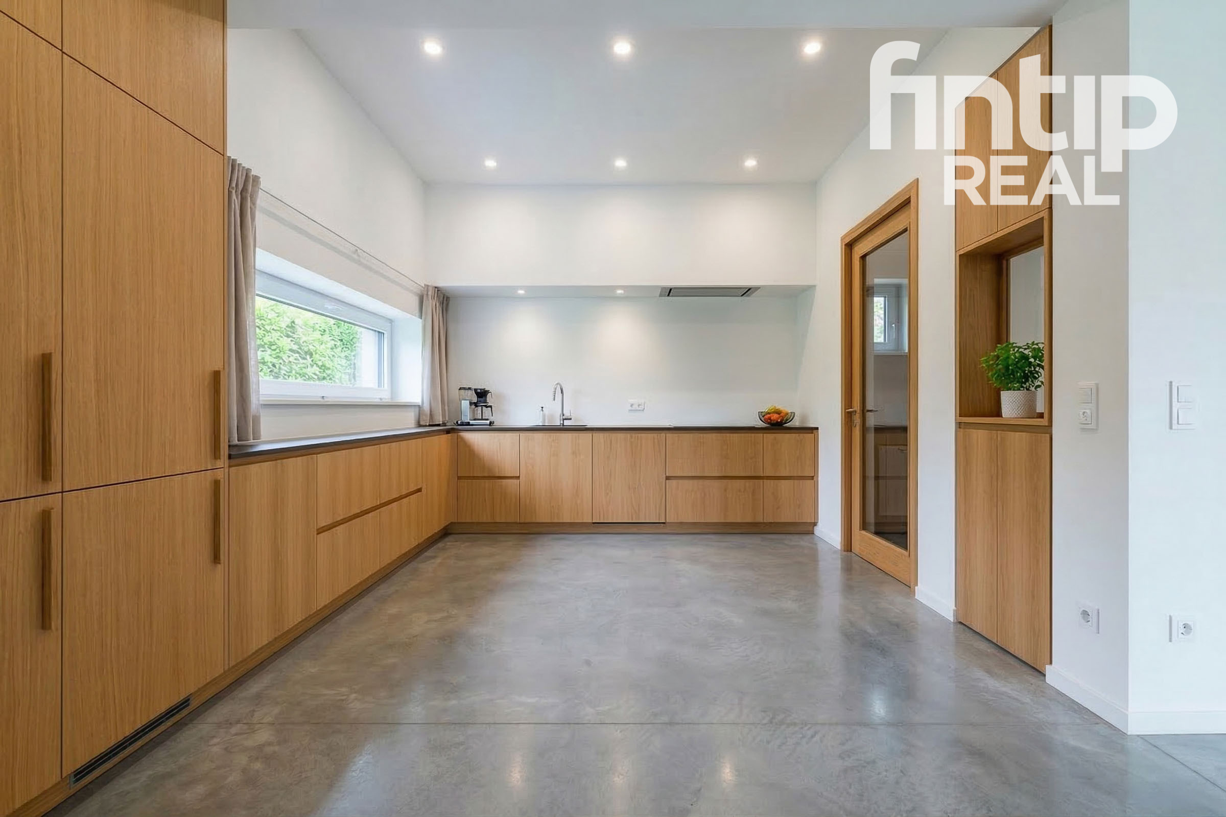 Prízemie: Zádverie so samostatným šatníkom, technická miestnosť, kúpeľňa s WC, otvorený denný priestor (kuchyňa so špajzou + obývacia hala) s výstupom na terasu. Denná časť rodinného domu je presvetlená prirodzeným svetlom, ktoré zabezpečuje výnimočné okno pri schodisku a veľké franczúske okno v obývačke.