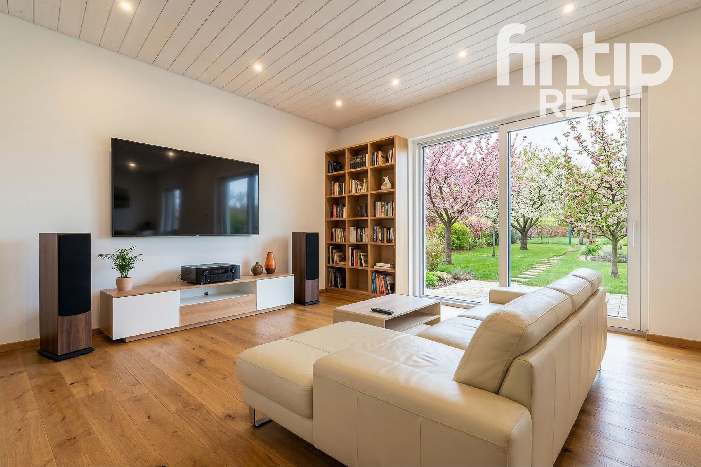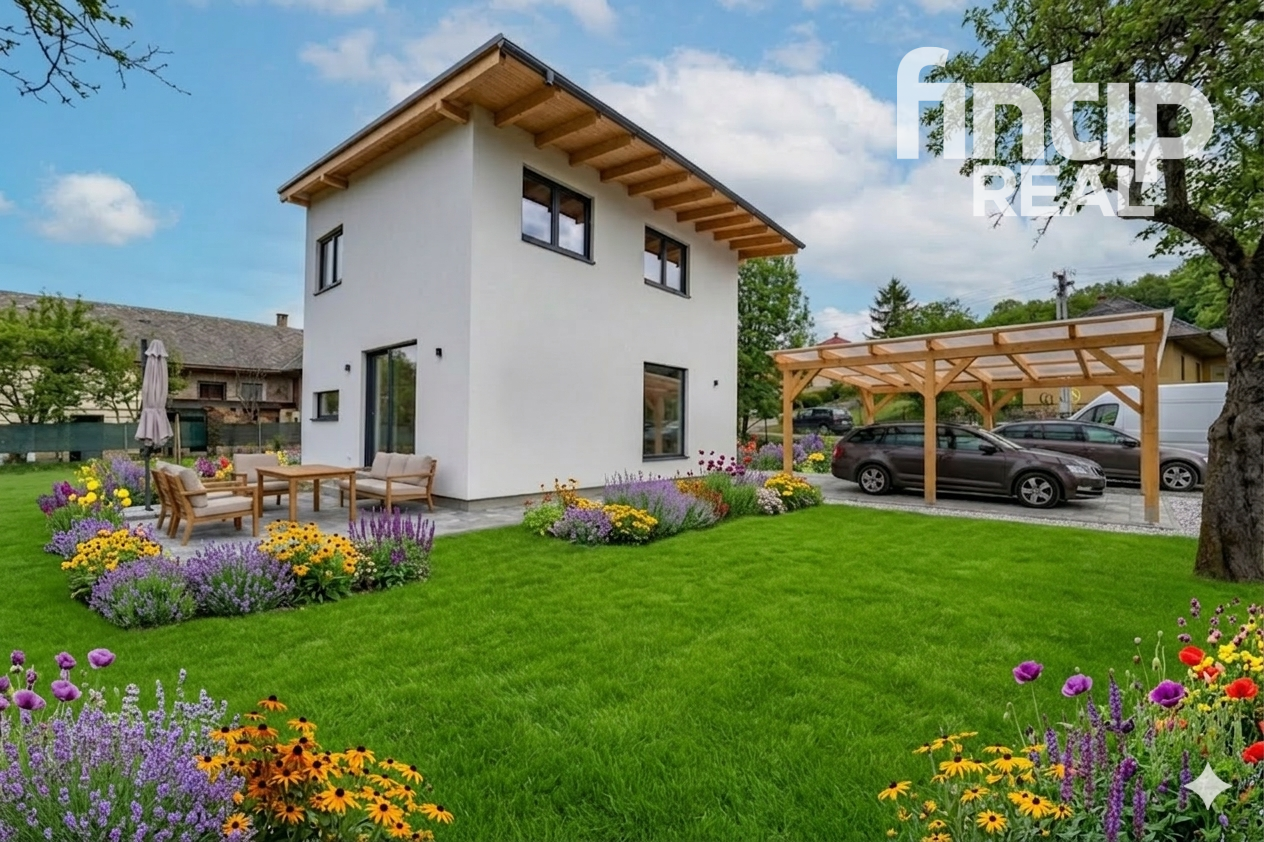 Príprava na budúcnosť: Elektroinštalácia už obsahuje kompletnú prípravu na fotovoltiku, klimatizáciu, kamerový systém, vonkajšie osvetlenie a predprípravu na vonkajšie žalúzie, priprava na domovy vratnik, internetove pripojenie, autonabijanie ( WallBox) priamo v pristresku.